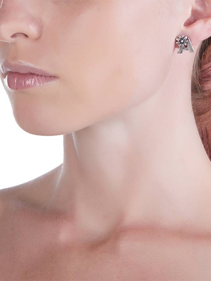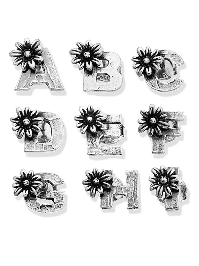Orecchini a lobo con margherita e farfallina. Il prezzo è relativo ad un solo orecchino. Si possono acquistare orecchini singoli, orecchini in coppia con la stessa lettera o con lettere diverse.